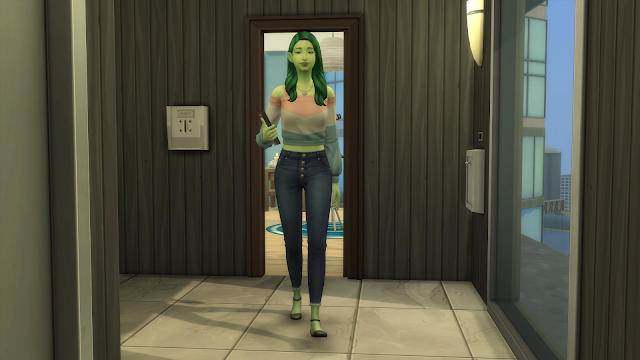 The game sent over this cutie as the first applicant, so I had Ariel ask her to room together immediately. She's a madeover version of one of the Maxis-made gallery sims, and while her original name is Zoe Flores, I decided to change it to Xiomara, so that there's no confusion between her and Zoe Patel.